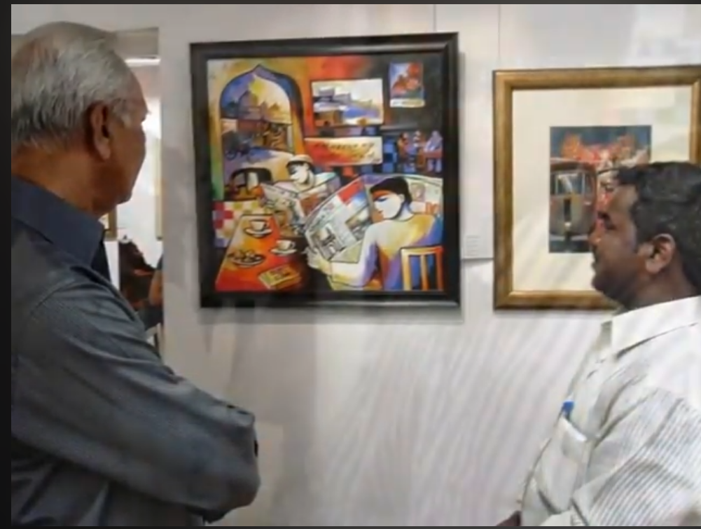 Art lovers at an exhibition of paintings and sculptures at Kalakriti Art Gallery